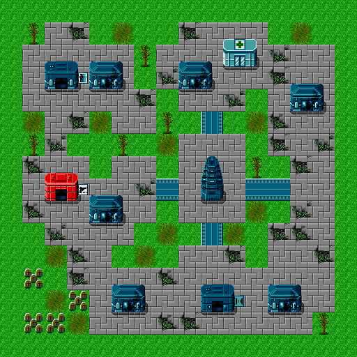 There are no armor or item shops in town, however, there is a small weapon shop located to the left of the map. The only services that remain include:
