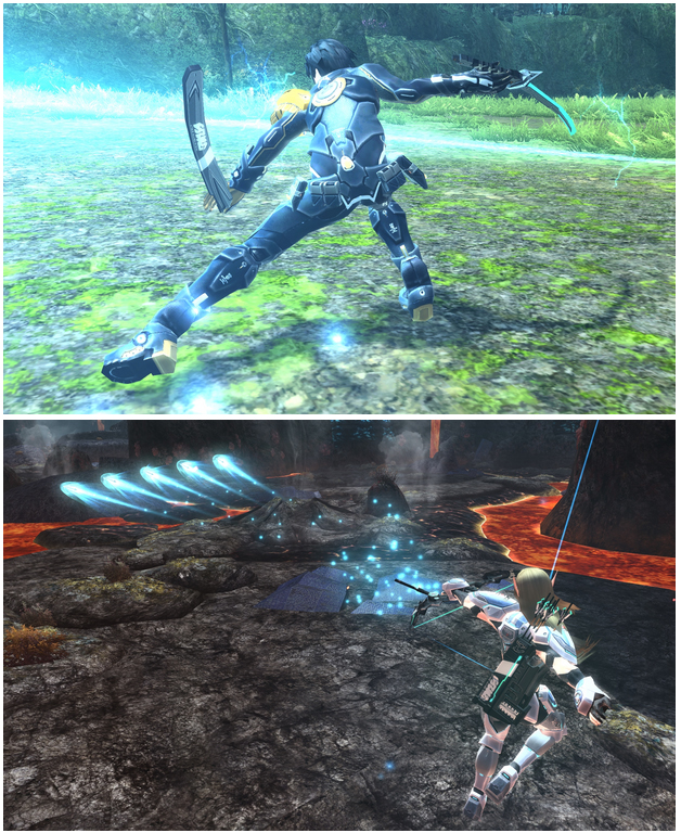 Bravers in Phantasy Star Online 2 feature a high APT base, along with a steady S-ATK and R-ATK base. Braver features a hybrid ability to be able to fully utilize two weapons of different damage types, this being the only other class in the game aside from Bouncer set up like this. Braver's skill tree offers skills that increase all damage types, damage to enemy weak spots/weak elements, and base R-ATK, S-ATK, and APT increases. The trees also offer special skills for the class's weapons, such as an attack boost for countering an enemy attack for Katana, and a temporary sacrifice of damage to the bow's normal attack damage in favor of shooting 3 arrows at once.