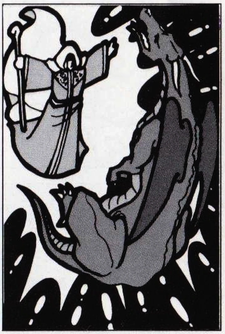 Lutz casting a magic spell on a dragon.