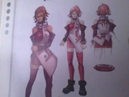 When Rico becomes Dark Falz' host, her body grotesquely mutates into a giant purple, tentacled creature. Despite the drastic change, she retains familiar characteristics from her human form. The creature's eyes are red, much like the red glasses she wore as a human, and on her left arm is her famous red bracelet.
